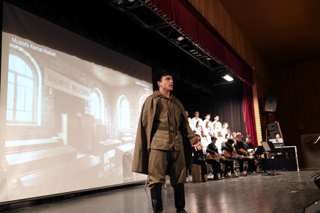 Okulun Müzik öğretmenleri ile okul öğrencilerinden oluşan koro ‘Gönüller Yapmaya Geldim’, ‘Kardan Aydınlık’, ‘Baba Bugün’ ‘İnsan İnsan’ eserlerini seslendirdiler