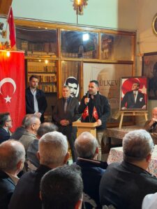 Tahtakale Han’da düzenlenen etkinlik, MHP Bursa İl Başkanlığı öncülüğünde, teşkilat üyeleri ve bağlı kuruluşların temsilcilerinin bir araya gelmesiyle büyük bir coşku ve saygı ortamında gerçekleşti. Programa, Ülkü Ocakları Bursa teşkilatları, Ülküm Eğitim Vakfı yetkilileri ve Türkav Bursa Şubesi üyeleri yoğun katılım göstererek, Türk milliyetçiliğinin simgesi Başbuğ Türkeş’i anmanın önemini bir kez daha vurguladı.