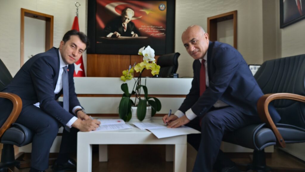 Gemlik Kaymakamı Osman Aslan Canbaba ve Gemlik Cumhuriyet Başsavcısı Sercan Kocabey, kaymakamlık makamında Gemlik’te ‘Çocuk Teslim Merkezi’nin yeni merkezine taşınmasıyla ilgili hazırlanan protokolü karşılıklı imzaladılar.